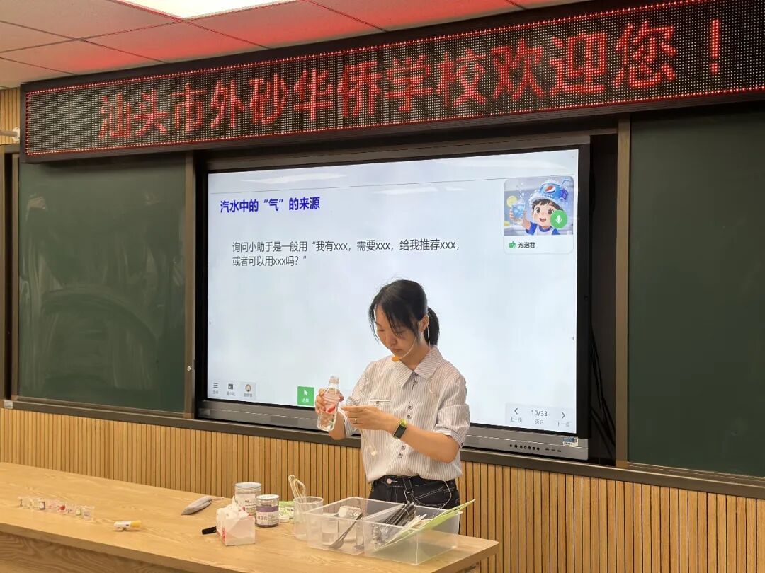 外砂华侨学校谢映敏老师以《AI伴我做汽水》为主题,为九年级学生打造了一堂化学与劳动深度融合的创新示范课。课堂紧扣新课标跨学科实践要求,以日常生活劳动任务“自制汽水”驱动,引导学生运用化学核心考点知识进行劳动,将化学实验成果与生活应用、健康理念结合,实现“做中学、学中悟、做中创”的育人闭环。整堂课以劳动为载体、化学为内核、AI为赋能,为初中化学跨学科教学提供了鲜活的实践范式。